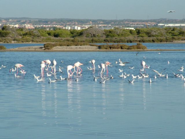 Esta ruta comenzó a las 09:00 horas en el Centro de Visitantes "Las Salinas" y continuó con un recorrido por las sendas del Parque Regional, desde donde se realizaron varias paradas en las que los participantes pudieron observar numerosas especies de aves, como el flamenco común (Phoenicopterus roseus).