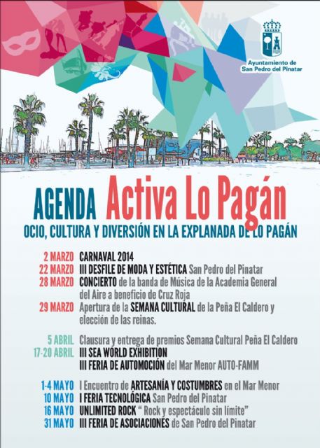 Visitación Martínez ha explicado que esta agenda aúna ferias comerciales con eventos y actividades relacionados con el ocio, la cultura, la solidaridad, el deporte, el turismo o la tradición. El objetivo del Ayuntamiento es centralizar eventos de diversa naturaleza para consolidar Lo Pagán como núcleo turístico del municipio, así como seguir trabajando por el fomento del pequeño comercio y la desestacionalización.