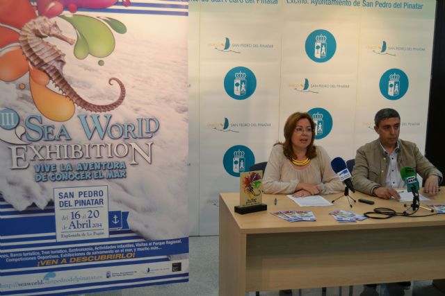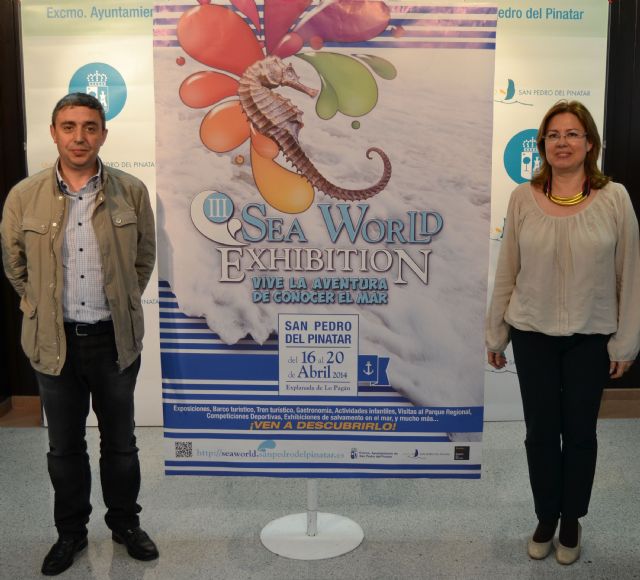 La alcaldesa de San Pedro del Pinatar, Visitación Martínez, el concejal de Comercio, José Guillermo García, han presentado hoy la III Sea World Exhibition, un evento dedicado al mundo marino que se desarrollará del 16 al 20 de marzo en Lo Pagán.