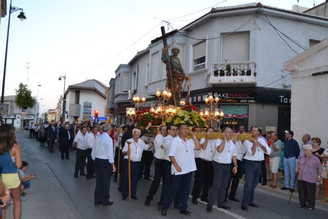 Tras la celebración de una misa huertana en la iglesia de San Pedro Apóstol, los cofrades de la hermandad de San Pedro Apóstol portaron a hombros la imagen del patrón que desfiló por el centro urbano de la localidad.