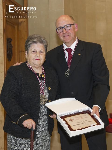 Tras la eucarístia, el Presidente de la hermandad, Mariano Visedo, nombró Hermana de Honor del Cristo del Mar Menor a Juana Alcaraz Fuentes por su implicación en los actos litúrgicos y la Semana Santa pinatarene y sus fuertes lazos de unión al Cristo del Mar Menor.