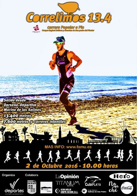 San Pedro del Pinatar acogerá este domingo, 2 de octubre, la cuarta edición de la carrera popular Correlimos 13.4, que se desarrollará en el entorno del Parque Regional de Salinas y Arenales de San Pedro del Pinatar y que incluirá diversas pruebas de diferentes distancias y categorías, coincidiendo con la celebración del Día Mundial de Las Aves.
