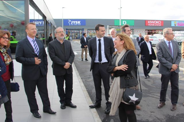La alcaldesa de San Pedro, Visitación Martínez, el gerente de Activ-Group, Mathias Buttkus, y la directora general de Comercio y Protección del Consumidor, Francisca Cabrera, han inaugurado hoy el parque comercial Pinatar Park, ubicado en la carretera N-332, en la pedanía de Los Sáez.