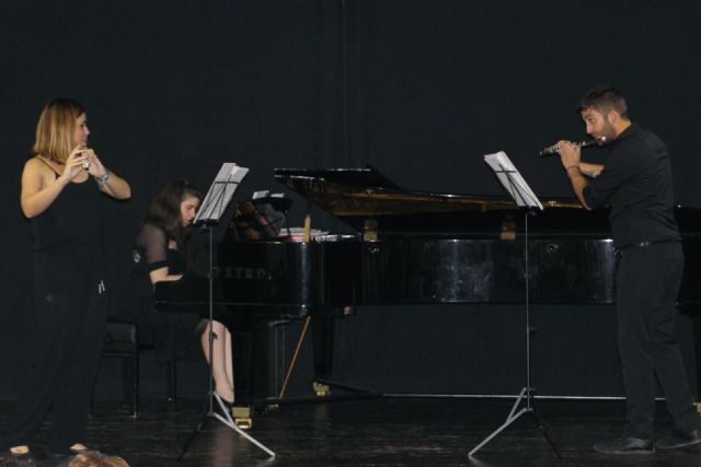 La casa de la Cultura acogió el domingo, 28 de mayo, un concierto del trío Hecuba, compuesto por los músicos murcianos Agustín Fernández (flauta), Celia Inglés (flauta) y María G. Vicente (piano), a beneficio de la Asociación de Familiares de Niños con Cáncer de la Región de Murcia (AFACMUR).