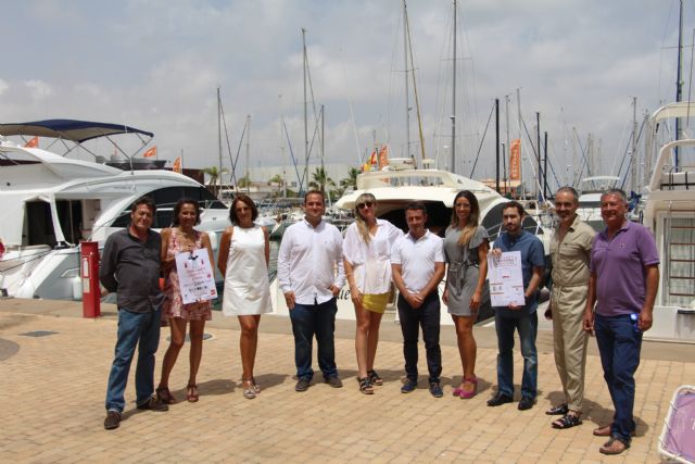 Javier Castejón, concejal de Festejos de San Pedro del Pinatar, Domingo Macanás, Gerente del Puerto Deportivo Marina de las Salinas, Coral María Muñoz, coordinadora del evento, y los diseñadores, Fernando Aliaga, Raquel Samper y Rosa Ruiz, presentan el Certamen de Diseñadores Emergentes que se celebrará el proximo domingo, 6 de agosto, en el Puerto Deportivo Marina de las Salinas.