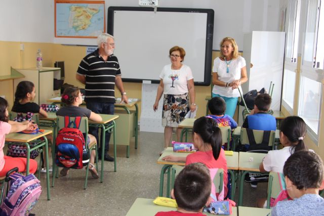 La alcaldesa de San Pedro del Pinatar, Visitación Martínez, y la concejal de Educación, Guadalupe García, han visitado hoy los colegios de la localidad con motivo del inicio del curso escolar, que ha arrancado con en torno a 3.000 niños escolarizados en infanitl y primaria.