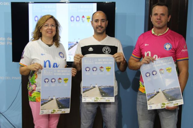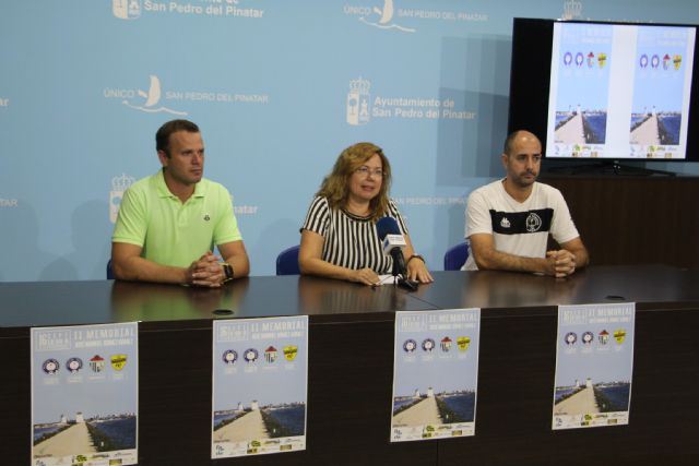 La alcaldesa de San Pedro del Pinatar, Visitación Martínez, y el concejal de Deportes, Daniel Pérez, han acompañado al presidente del club deportivo Pinatar Féminas, en la presentación del II Memorial José Manuel Gómez Gómez, que se celebrará el próximo sábado 16 de septiembre en el campo de fútbol del polideportivo municipal.