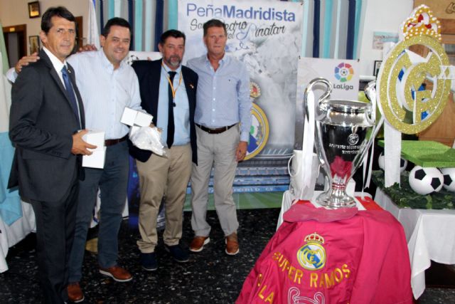 La alcaldesa de San Pedro del Pinatar, visitación Martínez, y el concejal de Deportes, Daniel Pérez, acompañaron a los miembros de la peña en este aniversario, que contó también con la presencia de los ex jugadores del Real Madrid, Paco Bonet y José Antonio Salguero, además del conocido periodista deportivo Tomás Roncero.
