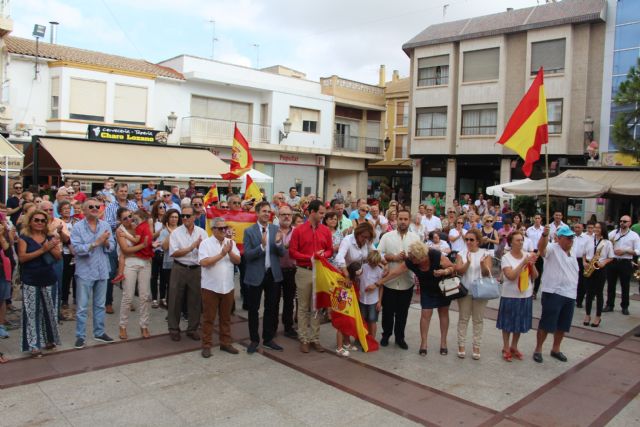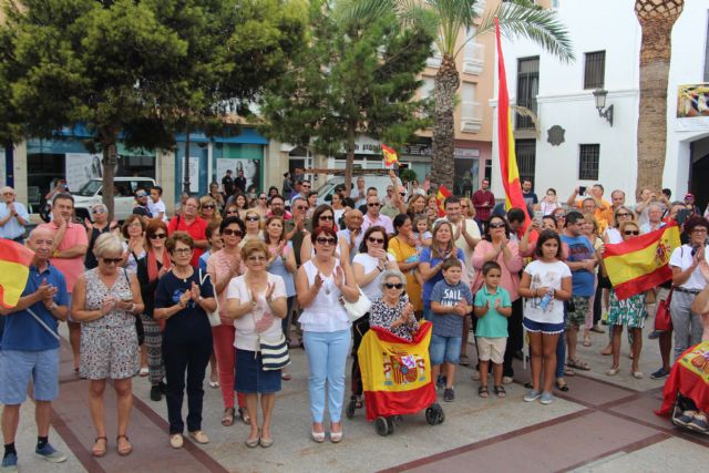 La plaza de la Constitución de San Pedro del Pinatar ha congregado esta mañana a decenas de personas en el acto institucional convocado por el Ayuntamiento en defensa de la unidad nacional y el orden constitucional.