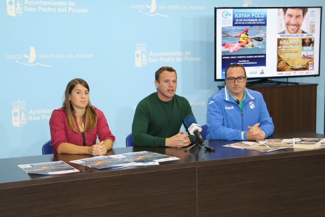 El concejal de Deportes, Daniel Pérez, el director deportivo, José Ramón Moya, y la responsable de la sección de Kayak Polo del club UCAM Asociación Deportiva Pinatarense, Laura Salmerón, han presentado las actividades que se desarrollarán los días 25 y 26 de noviembre, con el objetivo de promover y difundir las diversas disciplinas náuticas.