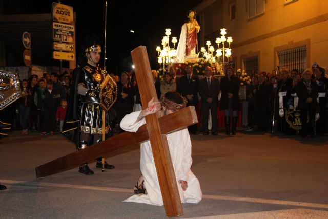 El grupo de teatro de San Javier, fue el encargado de representar el renovado Auto Sacramental de La Pasión en la iglesia de San Pedro Apóstol, repasando momentos como el prendimiento, el juicio, la condena a reo de muerte.