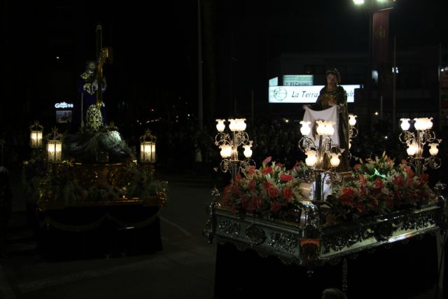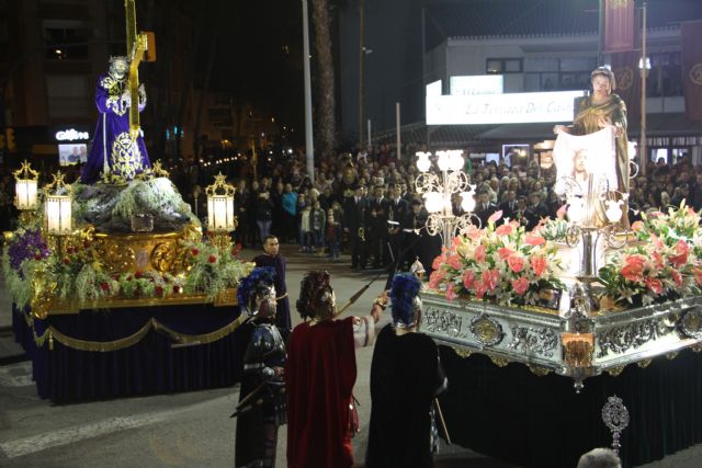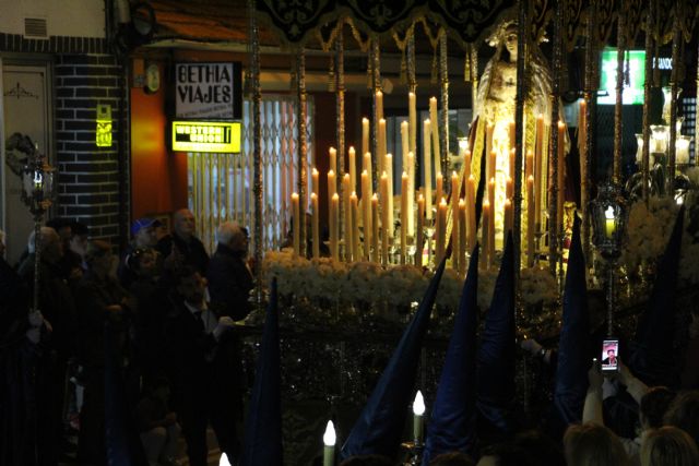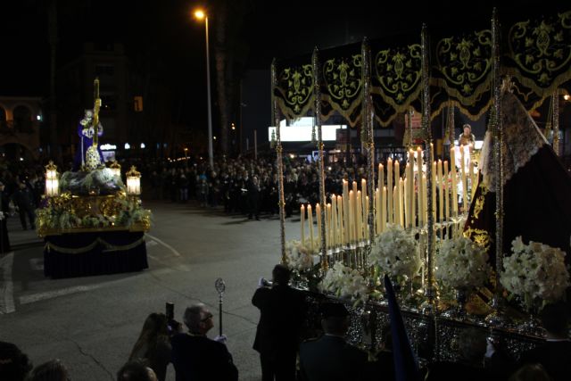 Se trata de una de las procesiones de más emoción, con el silencio roto por el desgarro de las saetas al Cristo y a la Virgen entonadas en esta ocasión por el pinatarense, Manuel Luzón.