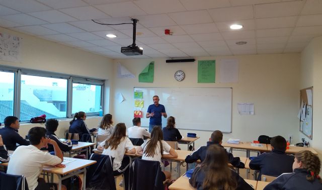 Los alumnos de 2° de la ESO del New Castelar College se divirtieron y aprendieron las claves para construir un relato, que sorprenda y divierta, de la mano del autor, a través de este taller enmarcado en la programación del Día del Libro.