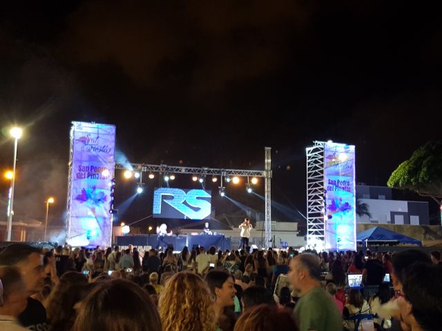 El nuevo recinto ferial acogió anoche tras el espectacular castillo de fuegos artificiales, el concierto con más "sabor" de las Fiestas Patronales de San Pedro del Pinatar que se celebró anoche, para cerrar el programa de actos del Día Grande de las Fiestas.