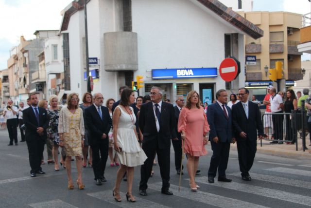 Así, fieles, vecinos, las reinas de las fiestas, autoridades locales, la banda de Cornetas y tambores de la Hermandad del Apóstol San Pedro y la banda de música municipal "Unión Musical" acompañaron ayer, en procesión por las calles más céntricas del municipio, a la imagen de San Pedro Apóstol. Cerraban la procesión la junta directiva de la Hermandad, la alcaldesa del municipio, Visitación Martínez, y el consejero de Fomento, Patricio Valverde, acompañados por miembros de la Corporación Municipal y autoridades civiles y militares.