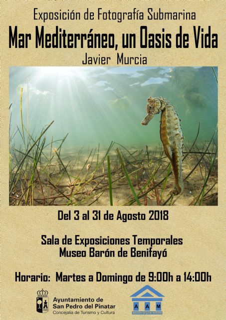 La concejal de Cultura del Ayuntamiento de San Pedro del Pinatar, Silvia Egea, inauguró ayer, junto al presidente de la Asociación Amigos de los Museos, Marcos David Gracia Antolinos, la exposición del fotógrafo submarino, Javier Murcia.