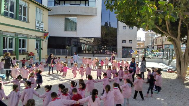 Por su parte, Los Pinos realizó murales por todo el centro con mensajes de paz y se realizó un acto conmemorativo en el patio del colegio con todos los alumnos. En el centro Los Antolinos se bailó la canción “Todo es posible” y se realizó un mural con mensajes a favor de la Paz y la No violencia y en Las Esperanzas se realizó una paloma gigante con la huella de todos los alumnos, se leyó una poesía titulada “Amigos de colores” y se entonó la canción “Al mundo entero”.