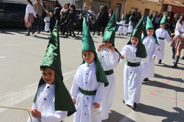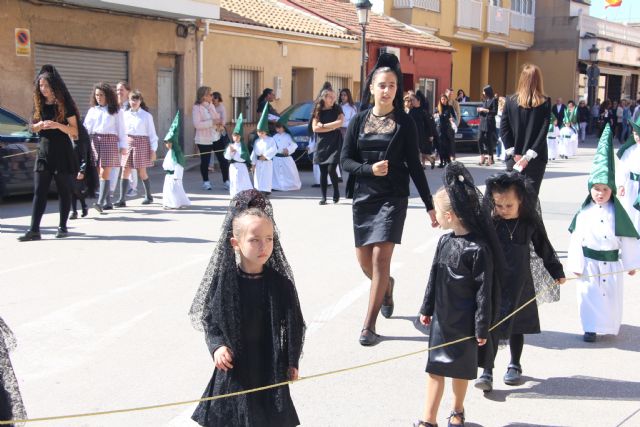 El cortejo se ha completado con decenas de niños, de educación infantil, primaria y secundaria, muchos de ellos vestidos de manolas y nazarenos, además del equipo docente y la directiva de la agrupación del San Juan Evangelista.