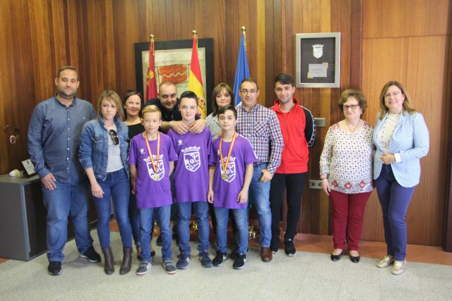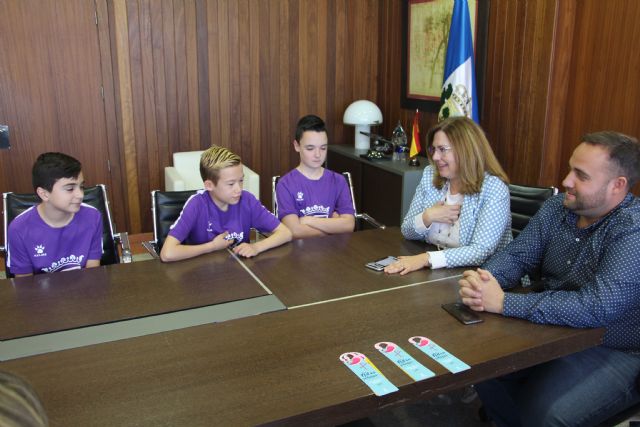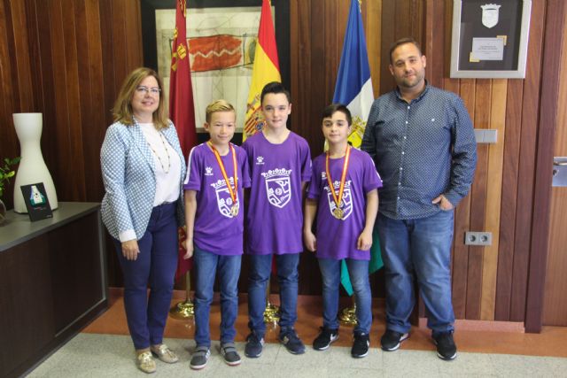 La alcaldesa de San Pedro del Pinatar, Visitación Martínez, y el concejal de Deportes de la localidad, Javier Castejón, han recibido hoy a los jugadores pinatarenses Javier Cárdenas, Óscar López y José Miguel Pérez, integrantes de la selección murciana alevín de fútbol sala que recientemente ganó el campeonato de España.