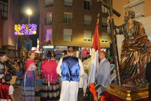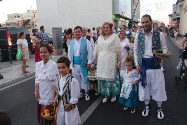 Las fiestas patronales de San Pedro del Pinatar vivieron anoche uno de sus actos más tradicionales y emotivos, la ofrenda de frutos al Patrón, que congregó a cientos de vecinos ataviados con el traje regional.