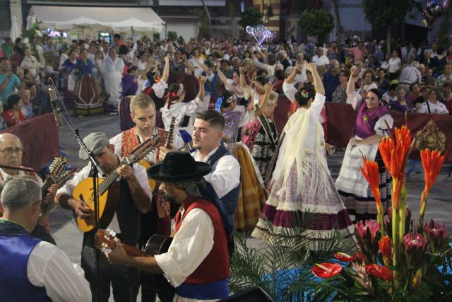 Asociaciones y colectivos, como las hermandades de la Semana Santa o las peñas de las barracas populares, las cortes de honor de las Reinas de las Fiestas, autoridades locales y cientos de vecinos conformaron este cortejo que estuvo amenizado por los bailes regionales de la Peña El Caldero, acompañada por la rondalla, y encargada de abrir el desfile, así como por la banda municipal Unión Musical, que lo cerraba.