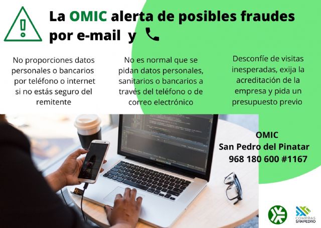 Desde la concejalía de Consumo advierten de posibles fraudes en este periodo, por lo que recomienda no proporcionar datos personales, sanitarios o bancarios por teléfono o e-mail si no se está seguro del remitente, y desconfiar de visitas inesperadas para supuestas reparaciones u otro tipo de servicios.