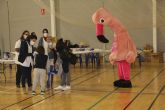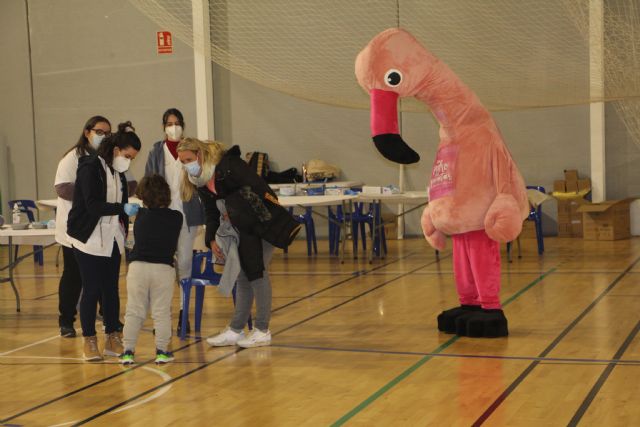 Durante la jornada, y para hacer más agradable el proceso a los pequeños, la mascota turística de la localidad, el flamenco Mingo, ha repartido pequeños detalles entre los menores que han sido vacunados hoy.