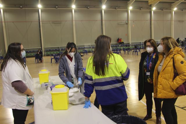El dispositivo de vacunación ha estado formado por personal sanitario y administrativo del Servicio Murciano de Salud, que ha contado con el apoyo de Protección Civil, favoreciendo que la jornada se desarrollara sin ningún incidente.