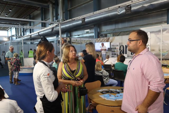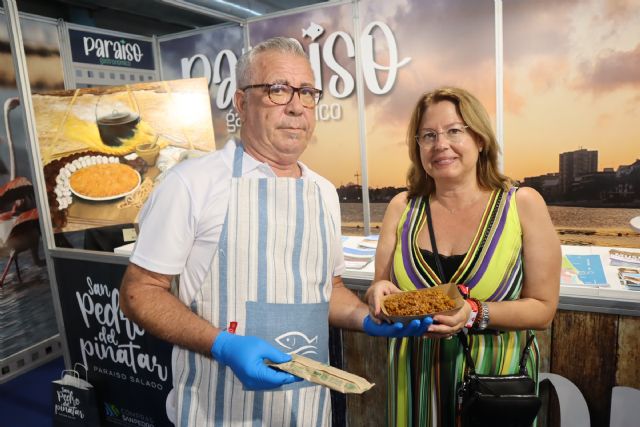 La alcaldesa de la localidad, Visitación Martínez, ha visitado hoy el stand del Ayuntamiento en el que, del 23 al 26 de septiembre, pone en valor el sabor y la tradición de la cocina local, así como su amplia y variada oferta turística de San Pedro del Pinatar.