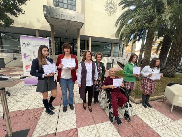 Durante el acto se han entregado también los premios del IV Concurso de Carteles "No más violencia contra la mujer" realizado en los centros educativos y Asociaciones para la integración del discapacitado, que han recaído en Carla Henarejos Marín, Paola Galindo Candel, Fabiola Galera Clemente, Noelia Moreno Luis y Jose Manuel Bronchut Muñoz.