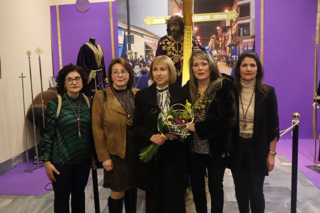 La alcaldesa de San Pedro del Pinatar, Visitación Martínez, inauguró esta exposición junto a la presidenta de la Cofradía, Mónica Sánchez, y el Cabildo General de la Semana Santa, Mariano Visedo.