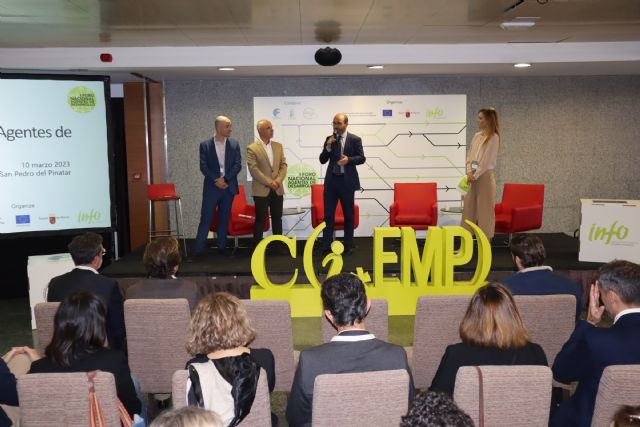 El director del Instituto de Fomento de la Región de Murcia (INFO),Joaquín Gómez, acompañado por el presidente de la Asociación de Agentes de Desarrollo Local de la Región, Carlos Moreno y Pedro Vivancos, concejal del Ayuntamiento de San Pedro del Pinatar, ha inaugurado esta mañana el I Foro de Agentes de Desarrollo Local que congrega que a más de 180 profesionales de toda España.