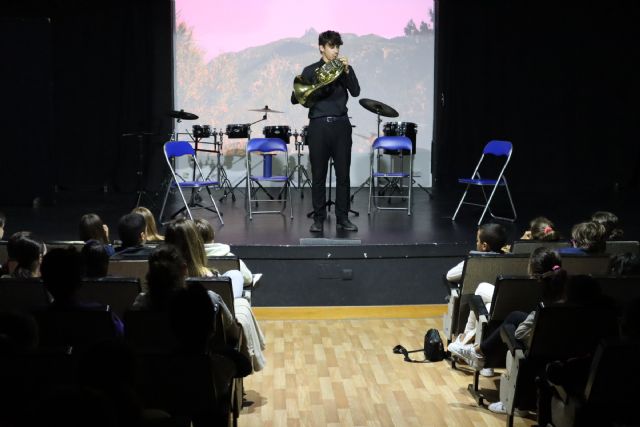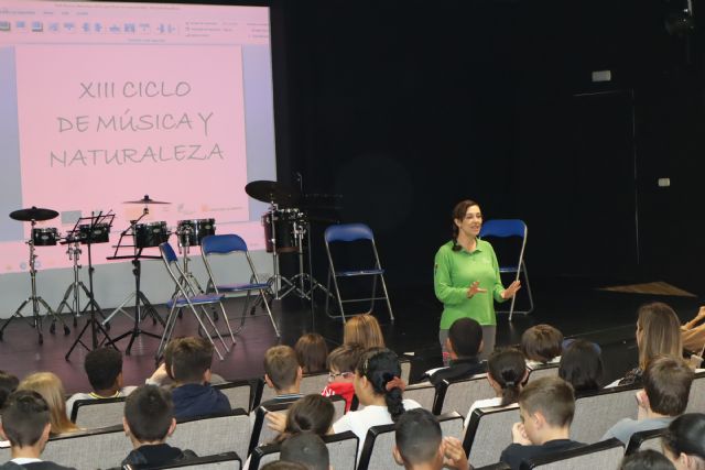 Escolares de diferentes centros de la localidad han disfrutado hoy en la Casa de Cultura de este recital, organizado por el Conservatorio de Música de Murcia, junto a la Dirección General de Medio Natural, y con la colaboración del Ayuntamiento, con el objetivo de ayudar a concienciar y sensibilizar sobre el respeto al medio Ambiente.