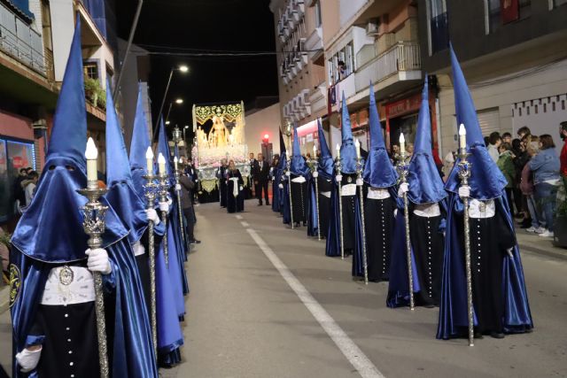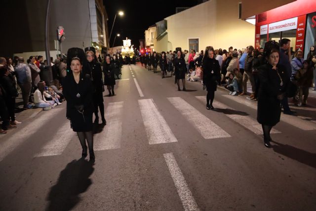 El párroco de la localidad, el presidente del Cabildo Superior de Cofradías y Hermandades de Semana Santa y las autoridades locales, encabezadas por la alcaldesa, Ángela Gaona, seguidos por la banda de música Unión Musical cerraron esta procesión que, durante cuatro horas, recorrió el casco urbano del municipio.
