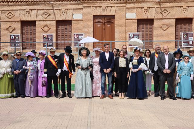 El alcalde de la localidad, Pedro Javier Sánchez y la concejal de Cultura, Carmen María López junto al director de Museo, Marcos David Gracia y el Presidente de la Asociación, José Antonio Martínez, han disfrutado de los bailes, juegos y recreaciones de época para disfrute de todos, gracias a la AC Los Modernistas de Cartagena de Levante.