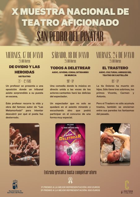 El certamen se celebrará del 17 al 24 de mayo en la Casa de Cultura, donde se representarán las tres obras finalistas a cargo de UGTEATRO, Asociación Juvenil Coral Ditirambo de Murcia y Asociación Cultural Amigos del Teatro de Castellón