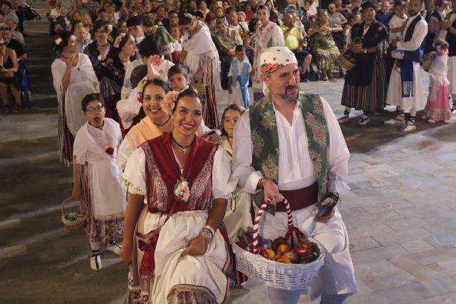 Las fiestas patronales de San Pedro del Pinatar vivieron anoche uno de sus actos más tradicionales, la esperada ofrenda de frutos al Patrón, que congregó a cientos de vecinos ataviados con el traje regional.