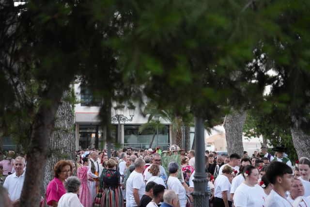 Asociaciones y colectivos, como las hermandades de la Semana Santa o las peñas de las barracas populares, las cortes de honor de las Reinas de las Fiestas, autoridades locales y cientos de vecinos realizaron el recorrido que estuvo amenizado por los bailes regionales de la Peña El Caldero, acompañada por la rondalla, así como por la banda municipal Unión Musical, que lo cerraba.