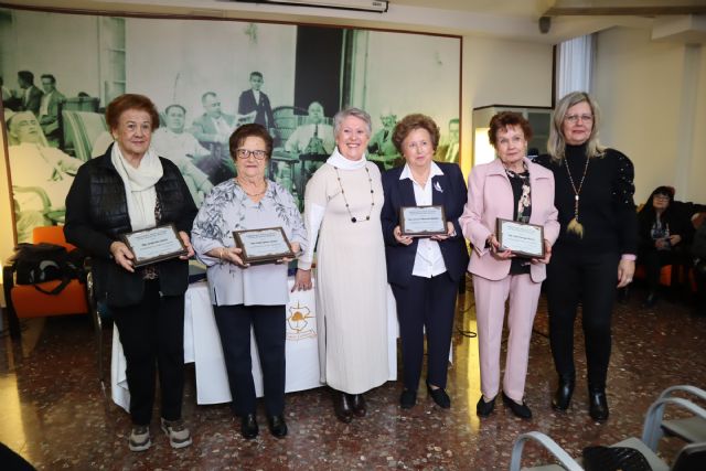 Así, la presidenta de la asociación, Inmaculada Borbolla, entregó un ramo de flores y una placa conmemorativa a Carmen Villaescusa Jimenez, Josefa Sáez García, Petra Gómez Arenas e Isabel Tárraga Alcaraz , por su fidelidad como socias.