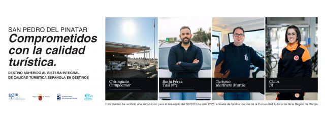 El municipio de San Pedro del Pinatar ha renovado y ampliado su presencia en 2025 en el sistema de calidad SICTED, incluyéndose en este sello de calidad tanto las playas del Mar Menor como el Parque Regional de Las Salinas, como la oficina de información Turística y el Centro de Visitantes, además de empresas de turismo activo, alquiler de vehículos, taxi, espacio escénico, comercios y hostelería, entre otros.