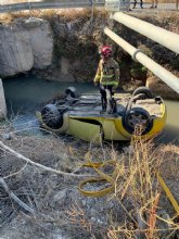 Un turismo se sale de la carretera y cae a una acequia, en Santomera
