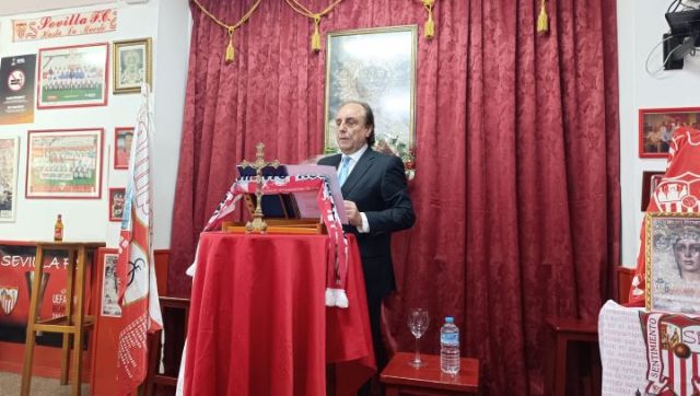 Como todos los años, la Peña Sevillista “Sentimiento Rojiblanco” realizó su exaltación cofrade en su cita del barrio sevillano de la Cruz Roja en la calle Palma del Río nº 8. Este año 2024 se cumple la XIX edición y corrió a cargo del Dr. Antonio Francisco Bellido Navarro, médico, sevillista, cofrade, costalero y capataz de Pasos.