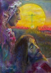 El artista ha querido destacar “la luz de la tarde del Viernes Santo, una luz simbólica que no solo enmarca la escena, sino que también enfatiza el tránsito entre la Pasión y la Resurrección”. Esta luz la que “baña el rostro de la Virgen y Cristo delineando la silueta de ambos por una línea de luz que divide la composición diagonalmente con la ayuda también del contraste de colores complementarios creando un efecto vibrante y expresivo”.