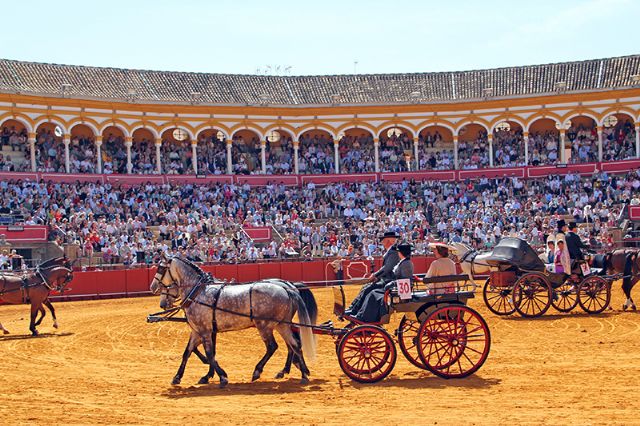 La Plaza de Toros de la Real Maestranza de Caballería,se llenó de historia y color con la tradicional Exhibición de coches de caballos, donde confluyen generaciones y aficiones. Martin Serra llegó desde Portugal con su hijo, mientras que María Navas Cabello, de solo diez años, mostró su limonera italiana enganchada a caballos holandeses, heredando la pasión familiar.