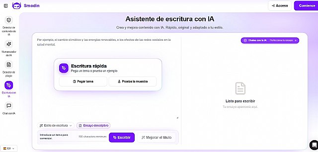 Vale la pena profundizar en todo esto. Existe una herramienta práctica y útil, Smodin escritor IA, que es un asistente para la redacción de textos. Ayuda a crear contenido y mejorarlo con la mayor rapidez posible.