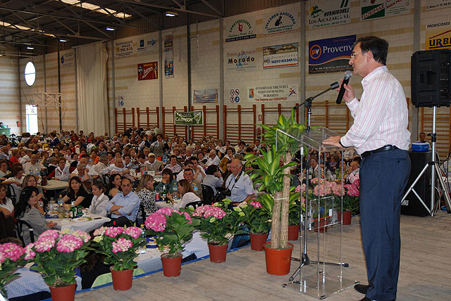 Unas mil personas han asistido este mediodía en el polideportivo municipal de Roldán, en Torre Pacheco, a la XXV Jornada de Convivencia de Mayores, presidida por el consejero de Política Social, Mujer e Inmigración, Joaquín Bascuñana.