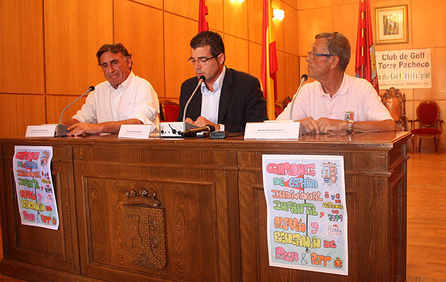 Esta mañana el presidente de la Federación Regional de Golf, Jose Jover Pérez-Almagro, el presidente del Club de golf de Torre-Pacheco, Rafael Baeza López y el alcalde de Torre-Pacheco, Daniel García Madrid, han presentado en el Salón de Plenos del antiguo ayuntamiento de Torre-Pacheco el campeonato de golf nacional individual de infantiles, alevines y benjamines Pitch & Putt 2009 que se celebrará entre el 5 y 6 de septiembre en el campo de golf municipal “Alfonso Legaz” de este municipio.Los tres comparecientes han tenido palabras de agradecimiento hacia las instituciones organizadoras. El golf es el segundo deporte que más se practica en la Región por este motivo, Daniel García Madrid, ha recalcado que el golf no pertenece a ninguna élite de tipo social o económico por lo que es un deporte para todos los ciudadanos.
