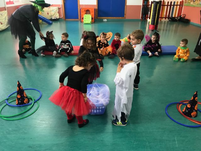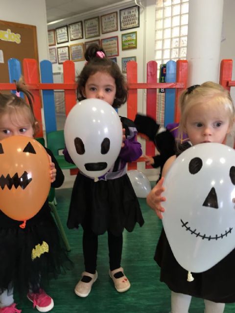 Taller de cocina de Halloween, con la elaboración de arañas y fantasmas, taller de manualidades, creando fantasmas, juegos de psicomotricidad, terroríficamente divertidos y un taller de decoración del centro, han sido los talleres realizados con motivo de Halloween. Además, y para finalizar, hoy martes 31 de octubre se ha organizado una Fiesta de Halloween, donde los niños vestidos para la ocasión, han bailado terroríficas danzas y realizado juegos con las profesoras.