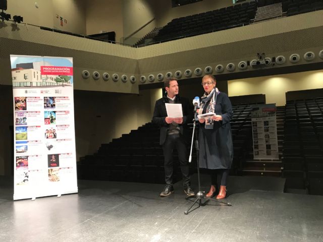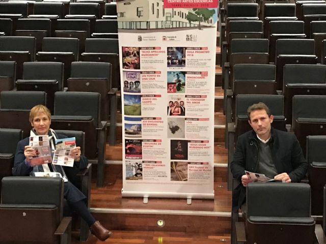 El Alcalde de Torre-Pacheco, Antonio León y la técnica de Cultura, Teresa Marín han presentado en el CAES la programación de espectáculos de los próximos meses.