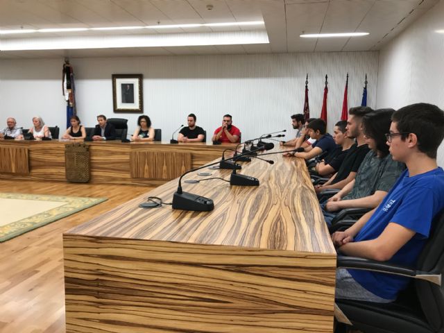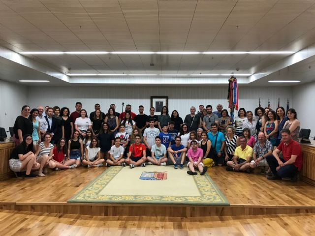 El Alcalde de Torre Pacheco, Antonio León, acompañado por la edil de Turismo, Rosalía Rosique Municipal, ha recibido a los jóvenes participantes en el Proyecto, así como a la directiva de la Asociación Amigos de la Música de Torre Pacheco, músicos y familiares.
